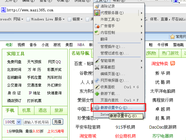 二、傲游浏览器设置首页